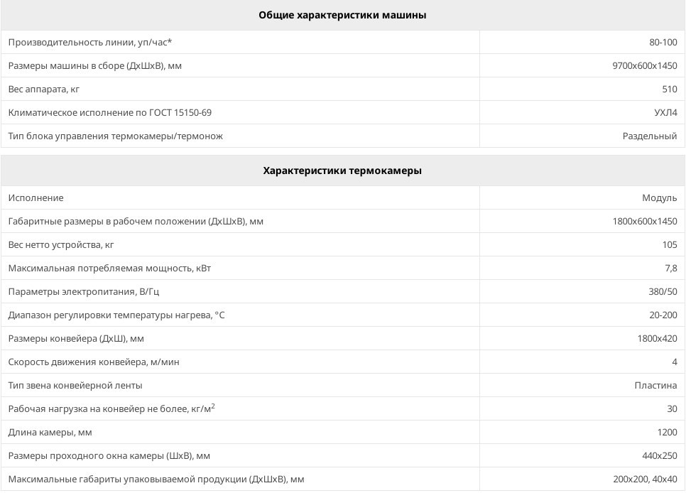 Технические характеристики упаковочной машины ТМ-5П
