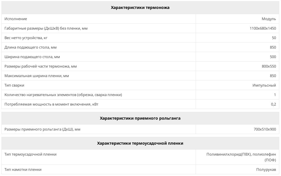 Технические характеристики упаковочной машины ТМ-2Р М4
